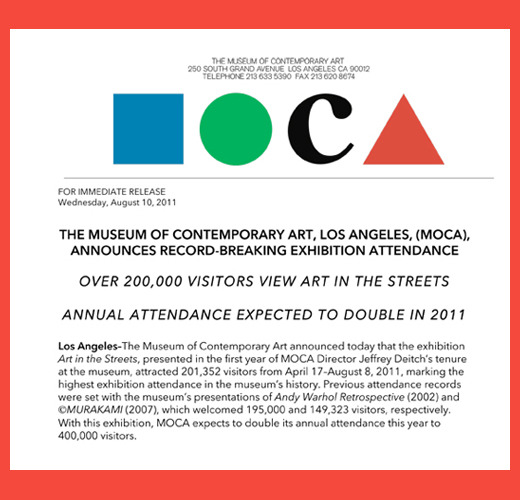 PDF press announcement courtesy of MOCA, Museum of Contemporary Art, Los Angeles